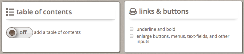 Figure 5: Learner Options TTS and content simplification panels